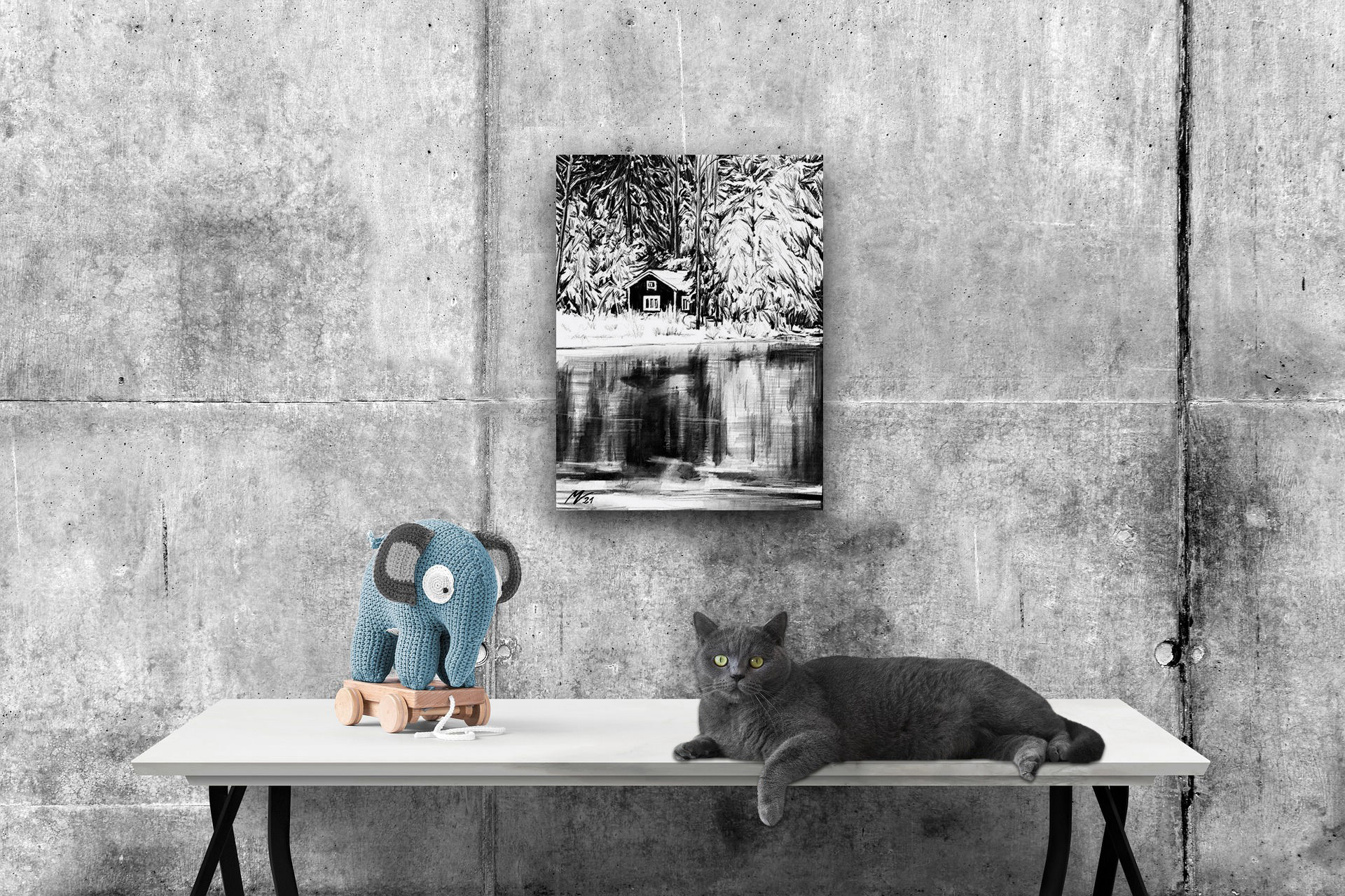 ● Quadro dipinto con tecnica a carboncino