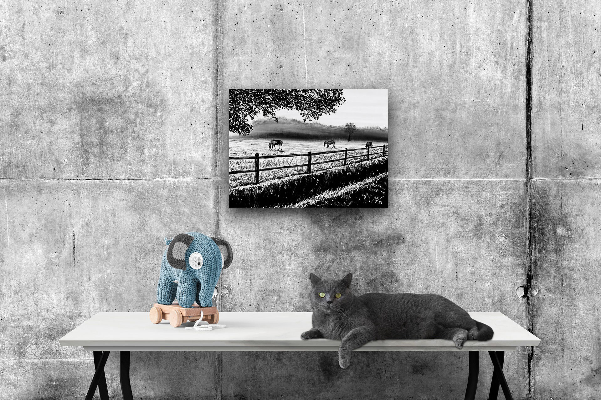 ● Quadro dipinto con tecnica a carboncino