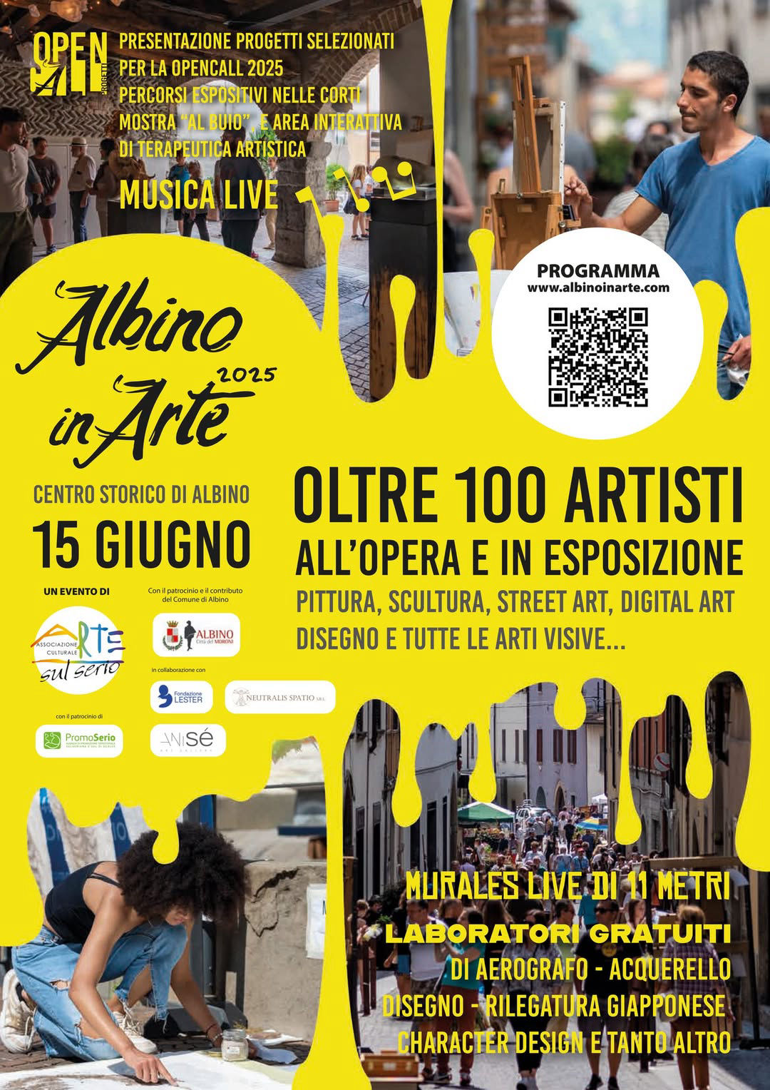 Evento Artistico che si terrà nel centro storico di Albino (BG) il 15 giugno 2025. La manifestazione ospita oltre cento artisti che per l’occasione lavorano ed espongono le loro opere in pubblico. L’evento nasce dalla volontà dell’associazione Arte sul Serio di creare un evento di contaminazione artistica, un suolo fertile per l’improvvisazione e la scoperta.