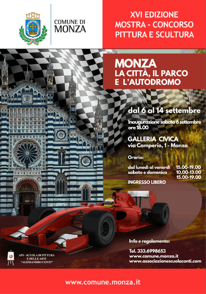 Mostra - Concorso dedicata alla città di Monza, il parco e l'autodromo, in uno dei momenti più intensi del calendario cittadino, quando Monza è sotto i riflettori per il celebre appuntamento sportivo nell'autodromo nazionale. Galleria Civica di Monza (MB) dal 6 al 14 settembre 2025.